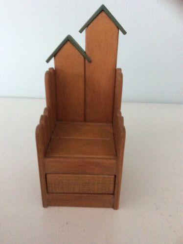DOLLHOUSE MINIATURE WOODEN Vintage Artisan Birdhouse Sitting Garden Chair /Bench