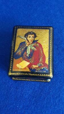 Title (ebay affiliate link): Small 19th Cent Russian H/P Lacquered Trinket Box w Alexander Pushkin Depiction