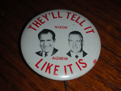 Title (ebay affiliate link): "They'll Tell It Like It Is Nixon/Agnew" vintage button