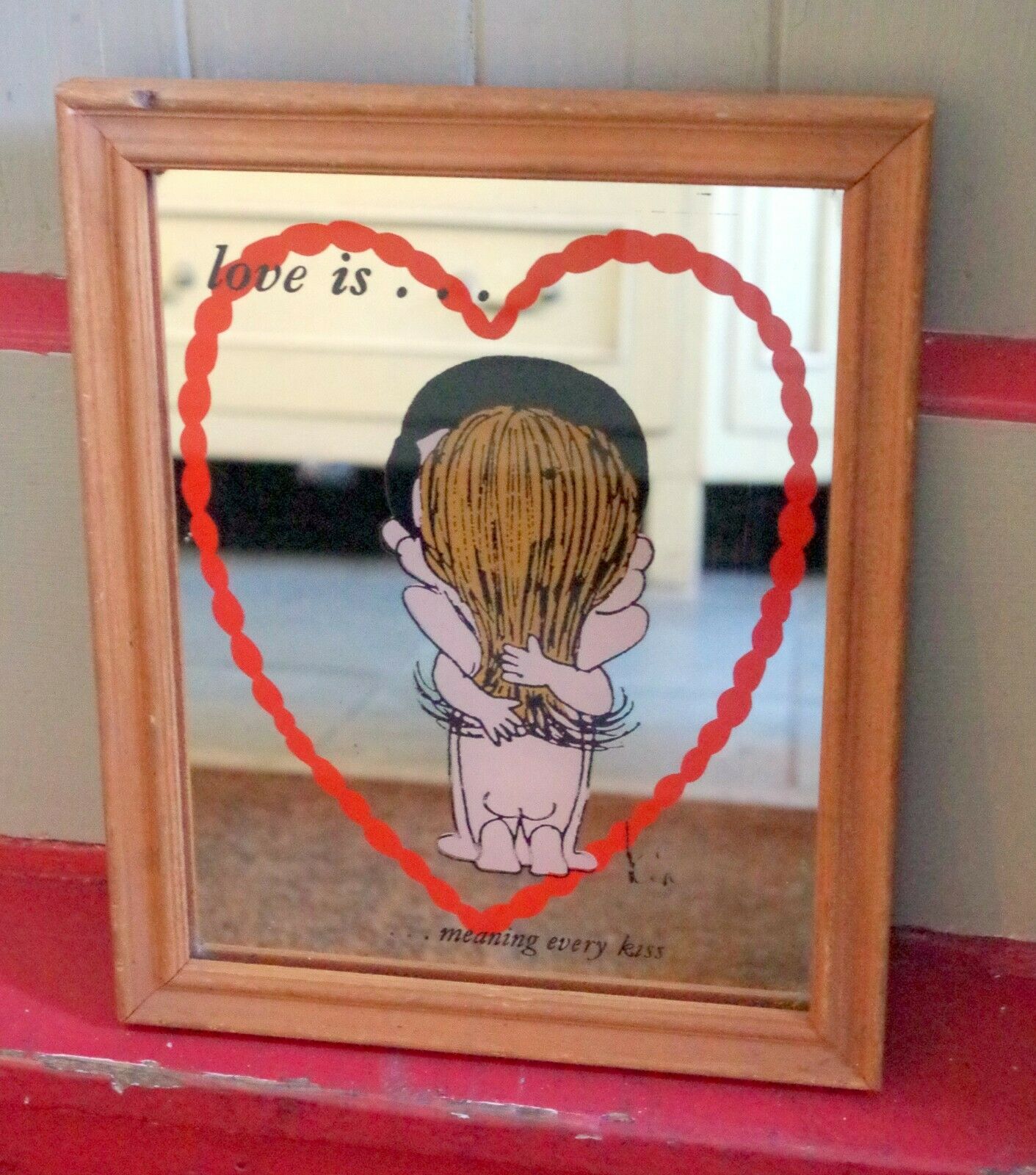 Title (ebay affiliate link): VINTAGE 70''s LOVE IS...PRINTED WALL MIRROR MEANING EVERY KISS WOOD FRAME 10.75"R