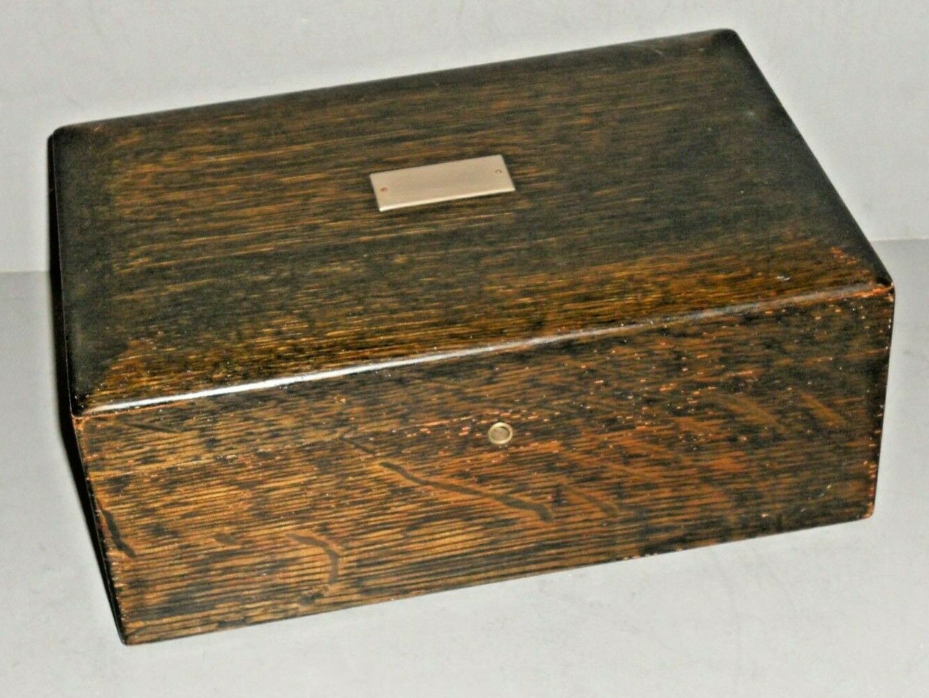 Antique Arts Crafts Quarter-Sawn Dark Oak Milk Glass Lined Cigar Tobacco Humidor