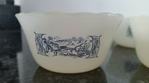Currier & Ives Dessert Cups Milk Glass Set of 4 Imperial Blue Star of the Road
