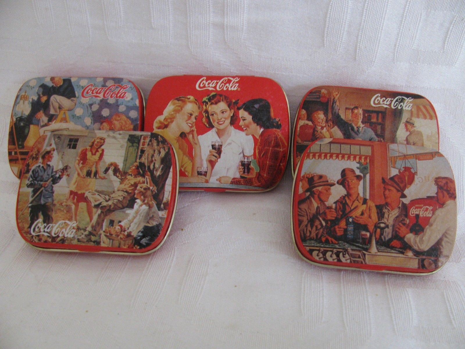 Coca Cola 5 Tin Pill Boxes 2 1/2" x 2"---