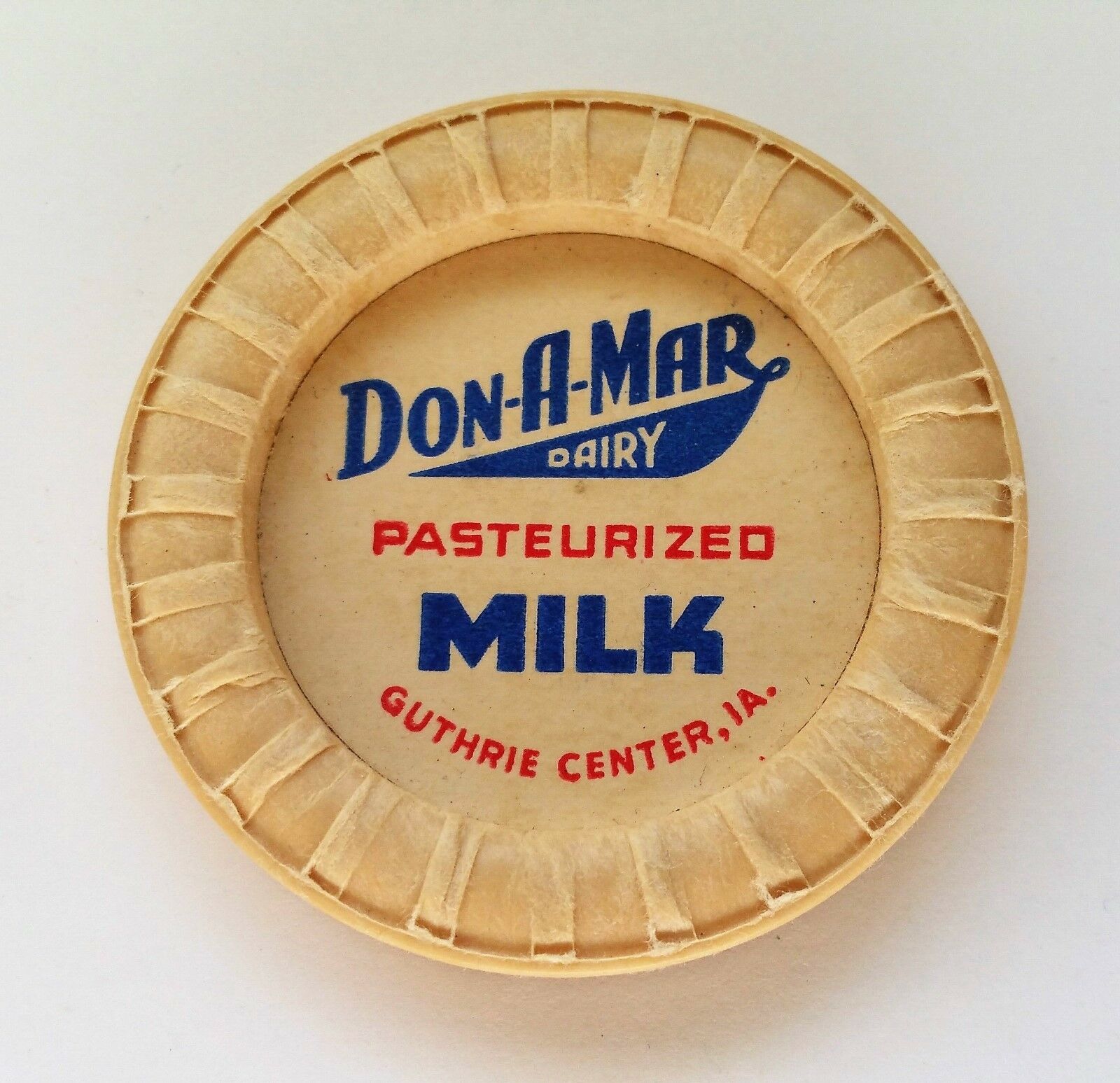 GUTHRIE CENTER IOWA FARM AD DON-A-MAR DAIRY MILK GLASS WIDE MOUTH BOTTLE CAP TOP