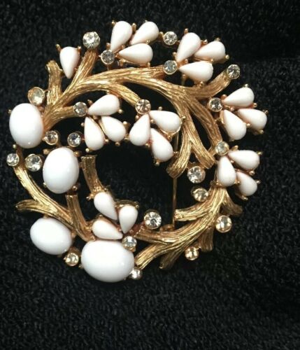 Title (ebay affiliate link): VINTAGE 1960''S CROWN TRIFARI MILK GLASS RHINESTONE BROOCH Stunning