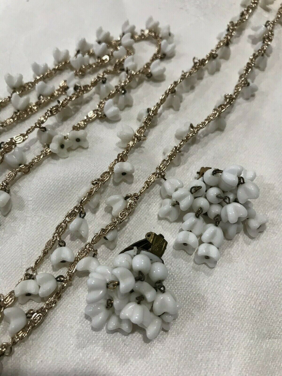 Title (ebay affiliate link): White Milk Glass Necklace Drippy Lilies W Germany Flapper Length Earrings