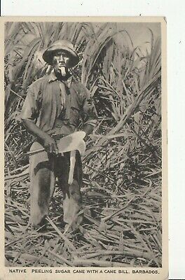 Native Peeling Sugar Cane with a Cane Bill Barbados Vintage Postcard