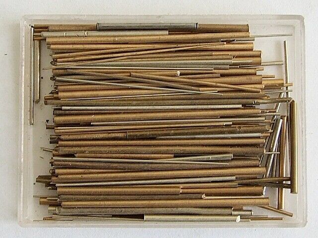 Title (ebay affiliate link): Large lot of tapered brass & nickel clock pins mixed, up to 40mm long.