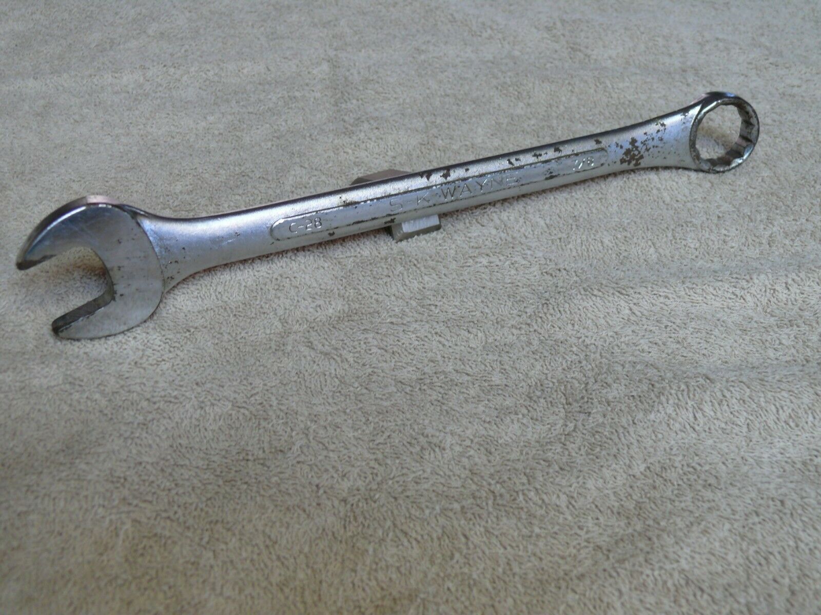 Title (ebay affiliate link): Vintage S-K Wayne 7/8 C28 12 Point Combination Open End Box Wrench Made in USA