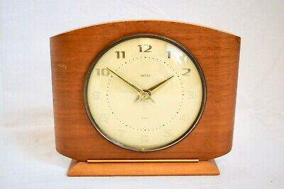 Title (ebay affiliate link): VINTAGE 1950s SMITHS 8 DAY SINGLE TRAIN MID CENTURY DESIGN TEAK MANTEL CLOCK