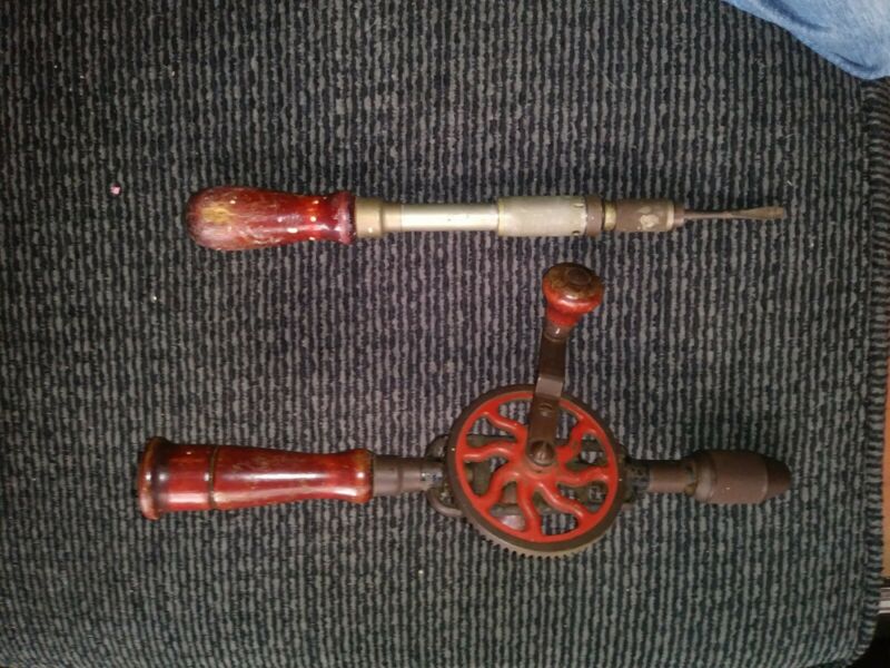 Title (ebay affiliate link): VINTAGE MILLER FALLS NO 2 HAND DRILL 15"LONG WITH BITS IN HANDLE AND SCREWDRIVER
