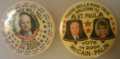 Title (ebay affiliate link): Two Guardfrog 2008 McCain and McCain/Palin Pinbacks