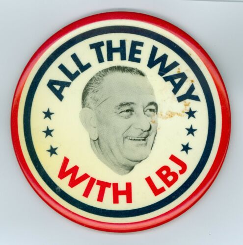Vintage 1964 President LBJ Political Campaign Pinback Button All The Way