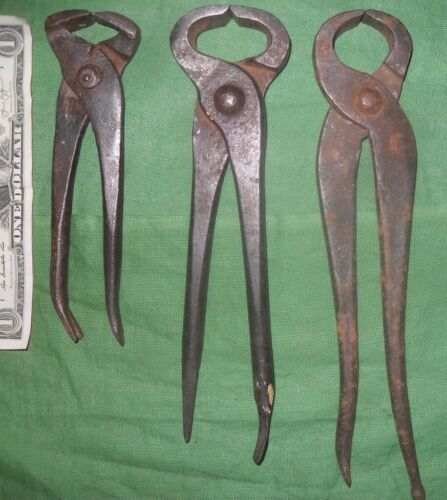 Title (ebay affiliate link): 3-LOT Vintage Nippers Blacksmith Farrier Carpentry Cutting Nails One Marked