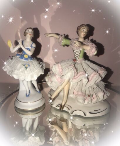 Antique 2 DRESDEN FIGURINES 5" & 5.5" *As Is
