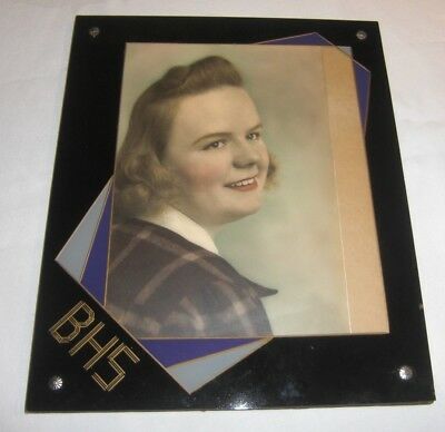 1948 BHS Burlington High School Special Painted Glass Easel Picture Frame 10x12"