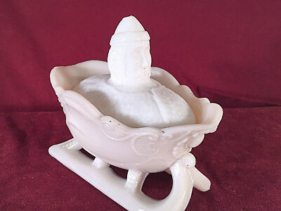 Milk Glass Robed Santa on Sleigh Covered Dish