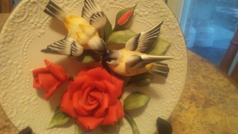 Title (ebay affiliate link): Capodimonte Chickadee and Flower 3D Plate - Made In Italy