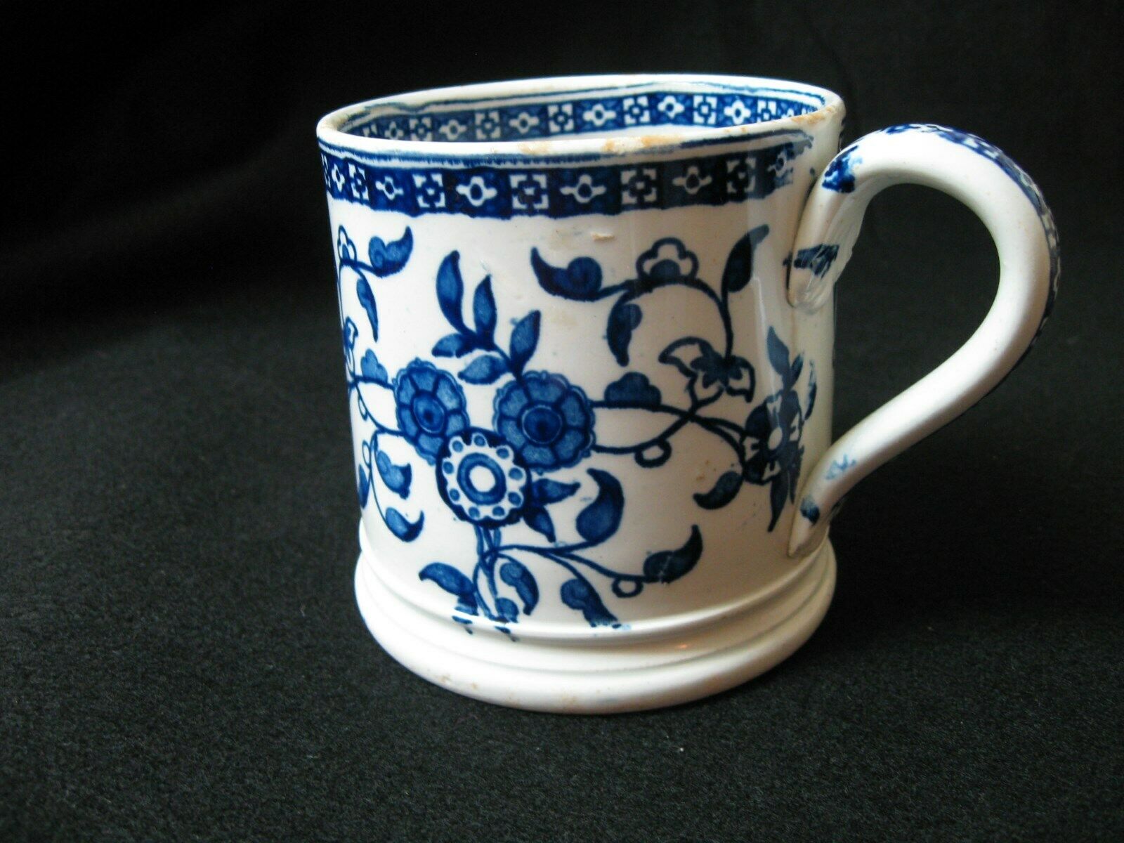ANTIQUE BLUE & WHITE IRONSTONE MUG