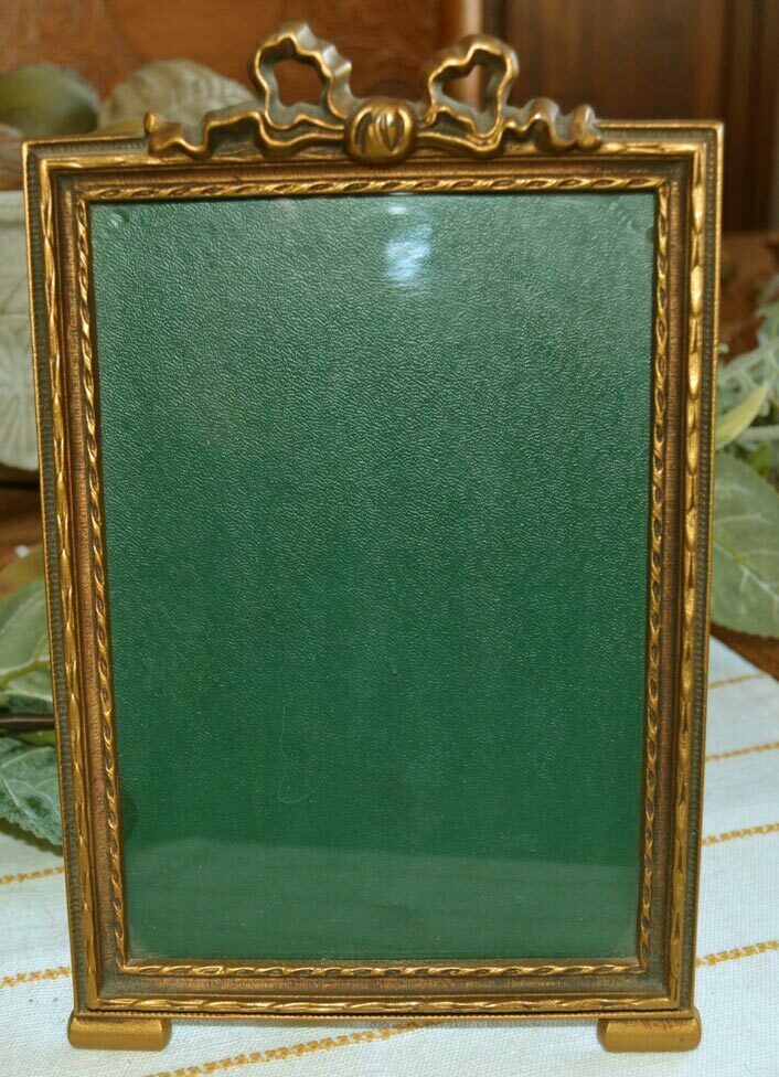 Title (ebay affiliate link): ANTIQUE cast METAL PICTURE FRAME BOW RIBBON DESIGN swing arm stand 5"x7"
