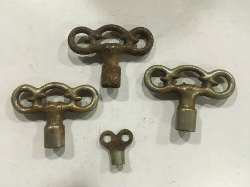 3 Vintage Old Ornate Gas Water Shutoff Key T Handle Tool Iron Steel 1/4" Square