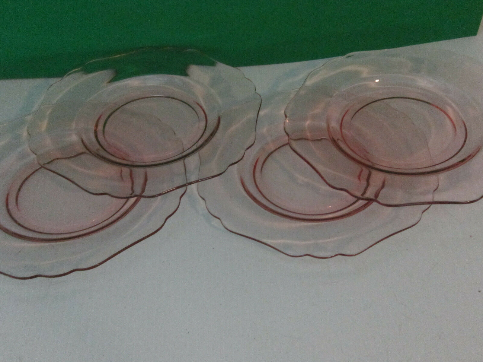 SET OF FOUR MARKED HEISEY GLASS PINK DEPRESSION DESSERT PLATES