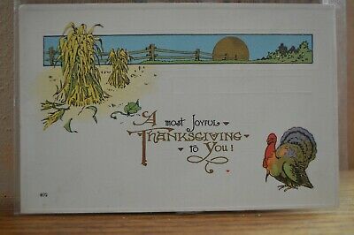 Title (ebay affiliate link): C 1920 Corn Shocks Fence Moon Turkey Joyful Thanksgiving Postcard