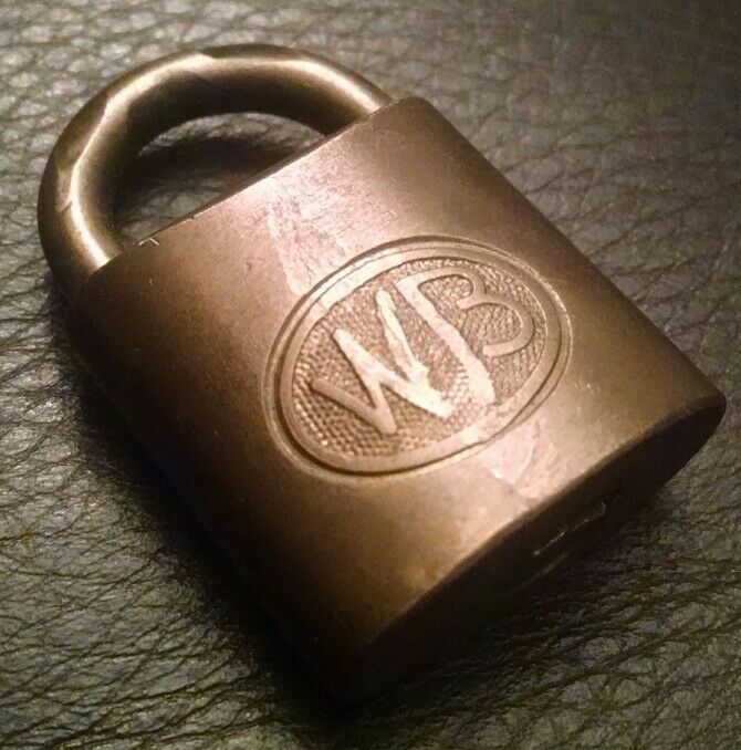 Title (ebay affiliate link): VINTAGE ANTIQUE WILSON BOHANNAN WB PADLOCK BRASS OLD EMBOSSED LOCK NO KEY USA