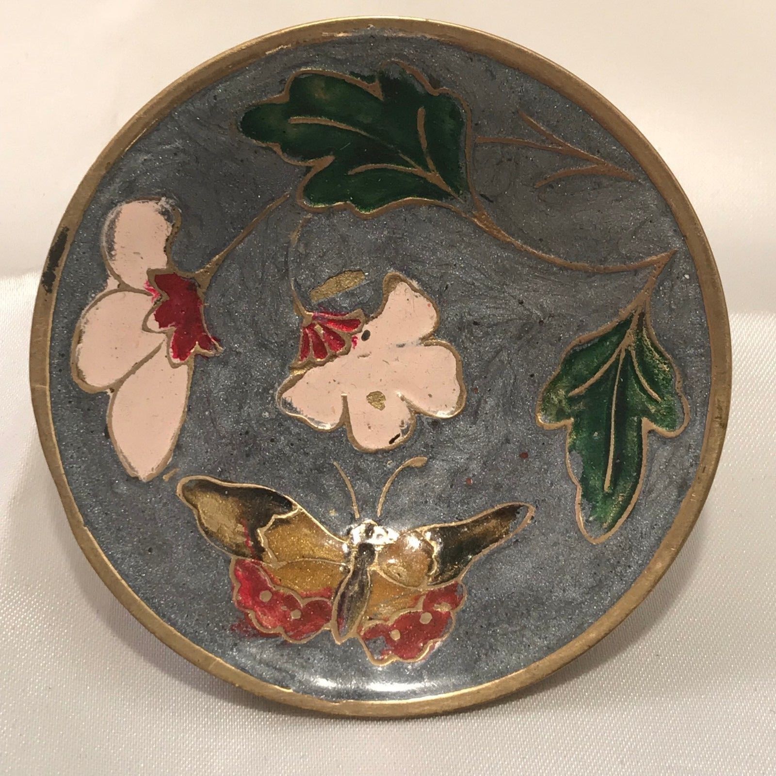 Title (ebay affiliate link): SMALL 3" ENAMEL FLOWER BUTTERFLY LEAF MADE IN INDIA DECORATIVE TRINKET DISH