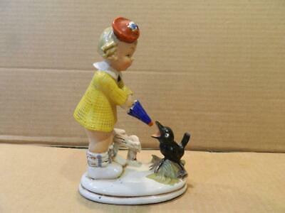 Carl Schneider Child w/ Umbrella & Bird Figurine # 20843 Germany Antique
