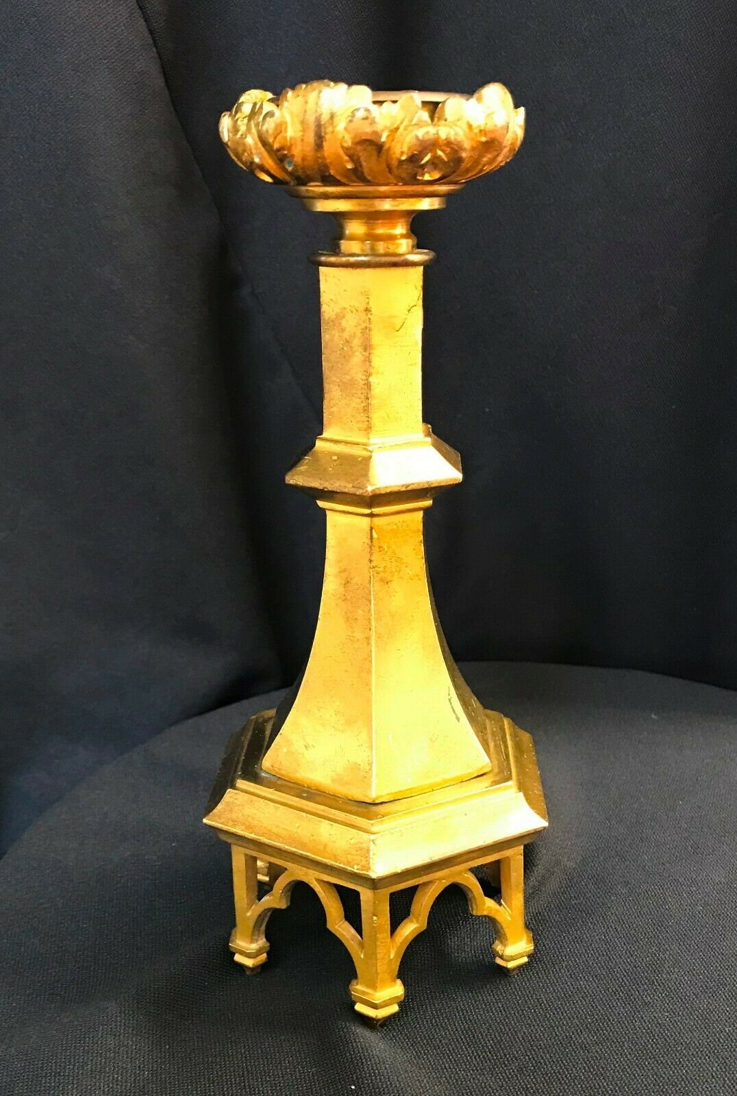 19th c. Antique Bronze Gothic Candle stick holder Religious 8.5" t. candlestick