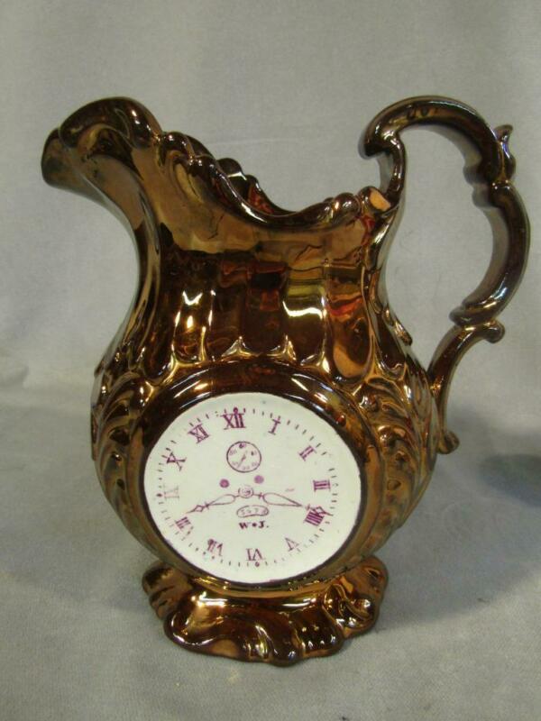 Title (ebay affiliate link): 1840 STAFFORDSHIRE ART POTTERY COPPER LUSTER 8" JUG - ENGLISH MANOR & CLOCK W*J
