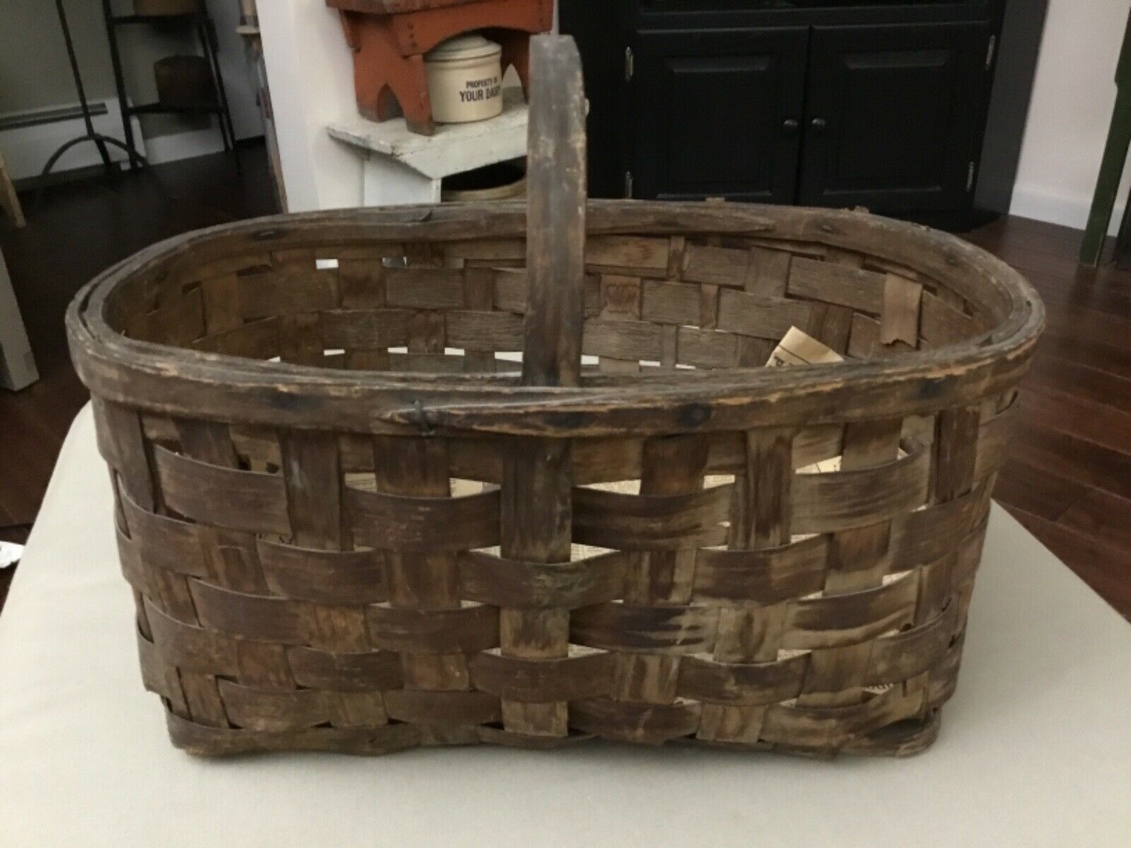 Title (ebay affiliate link): EARLY ANTIQUE PRIMITIVE MARKET BASKET BENT WOOD HANDLE