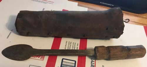 Antique Hand Farm Tool Blade Ice Pick Chisel Leather Case For Belt
