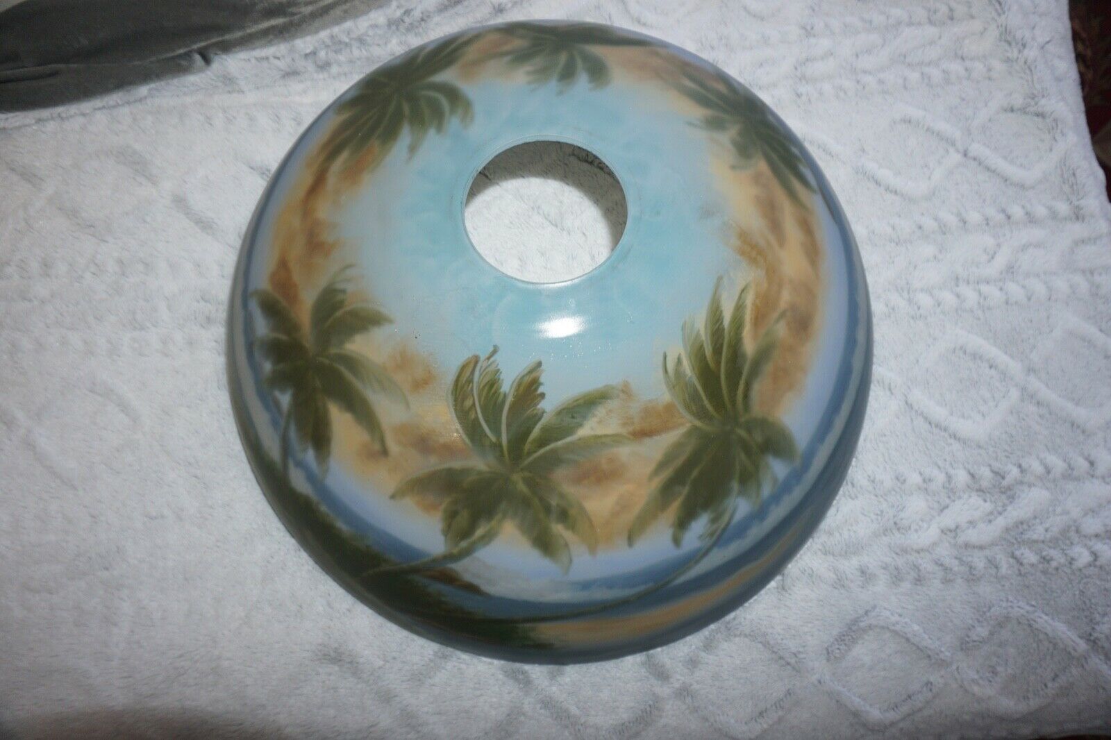 Antique reverse hand painted glass lampshade - Tropical Scene 19.5" PERFECT
