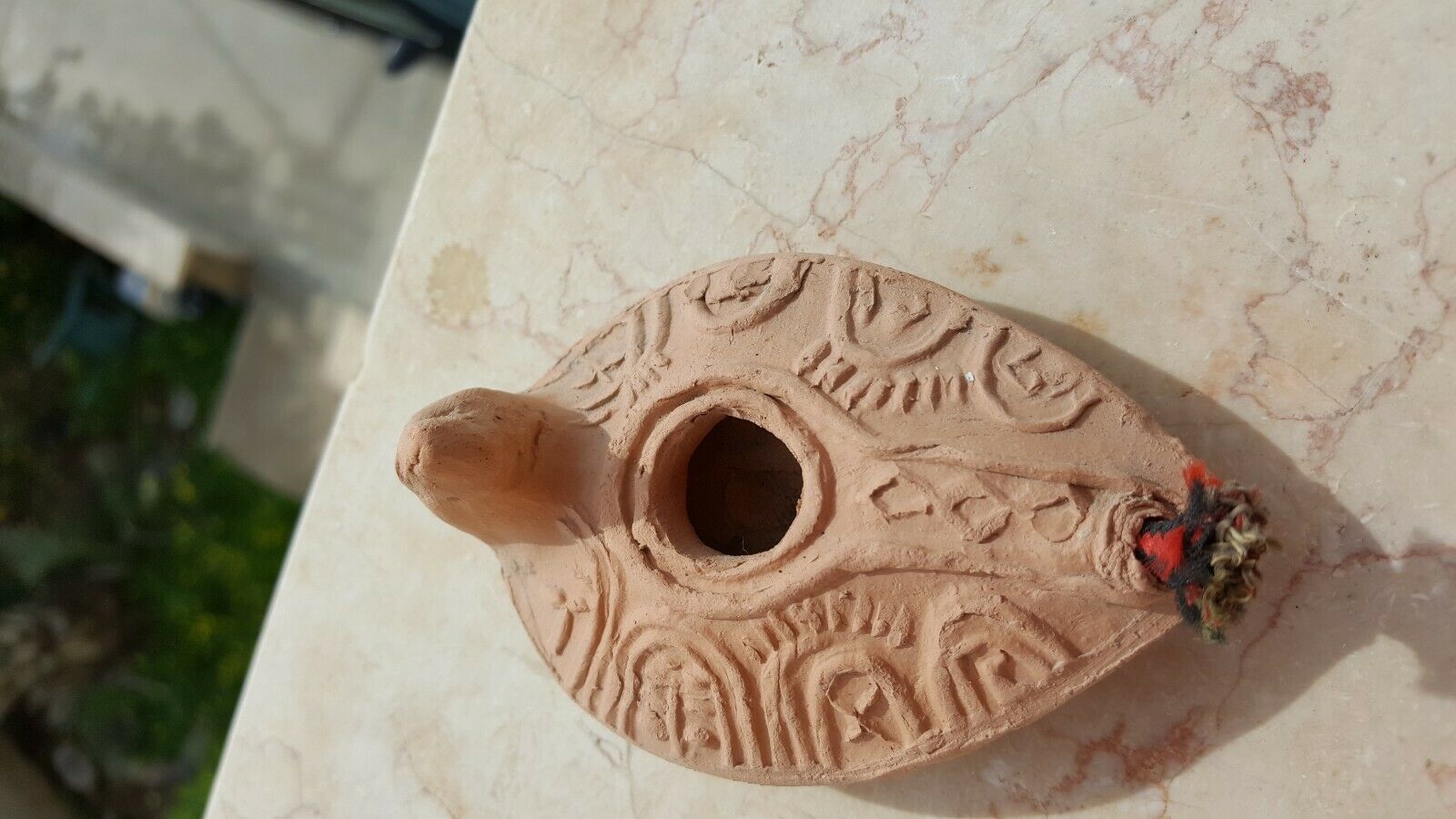 Old Oil Lamp Vintage Holy Land Kerosane Pottery Decorative