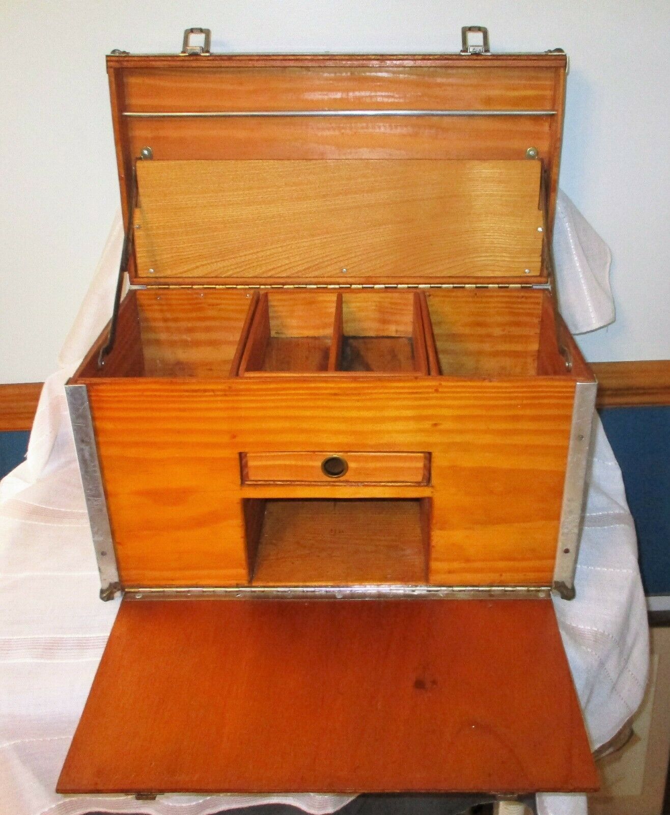 Title (ebay affiliate link): Vintage Americana Wood Crafted Box w/Lid, Compartments & Drop Front