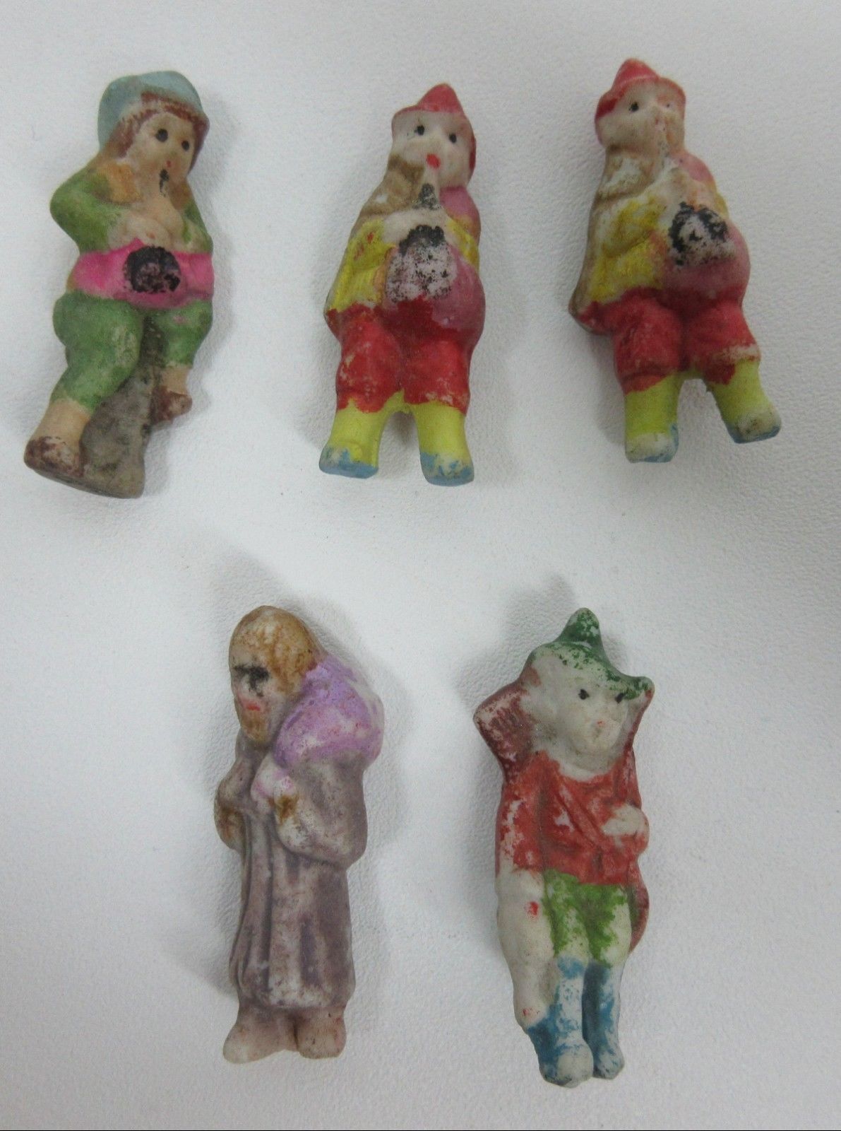 Set of 5 Antique Miniature Bisque Figures Musician Archer