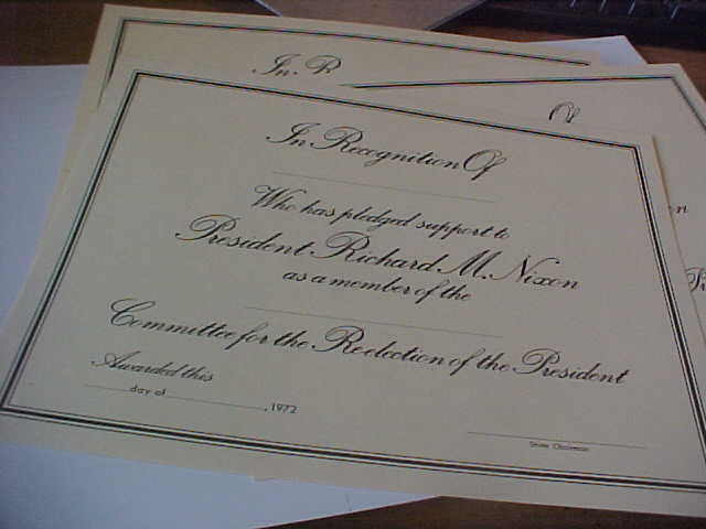 Title (ebay affiliate link): 1972 COMMITEE FOR THE RE-ELECTION OF THE PRESIDENT RICHARD M. NIXON CERTIFICATE