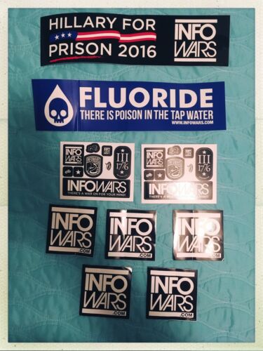 Title (ebay affiliate link): Alex Jones Kit 9 Info Wars Bumper STICKERS Trump Politics LOT 9 Fluoride Hillary