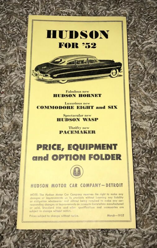 Title (ebay affiliate link): 1952 Hudson Hornet Wasp Commodore Pacemaker Price Equipment Option Folder