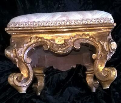 Title (ebay affiliate link): HEAVILY CARVED, GESSOED AND GILT LOW, ANTIQUE FOOTSTOOL ~ RE-UPHOLSTERED.