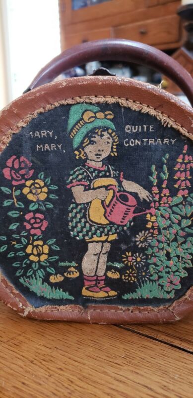 Antique 1920s Leather Mary Mary Nursery Rhyme Doll Suitcase