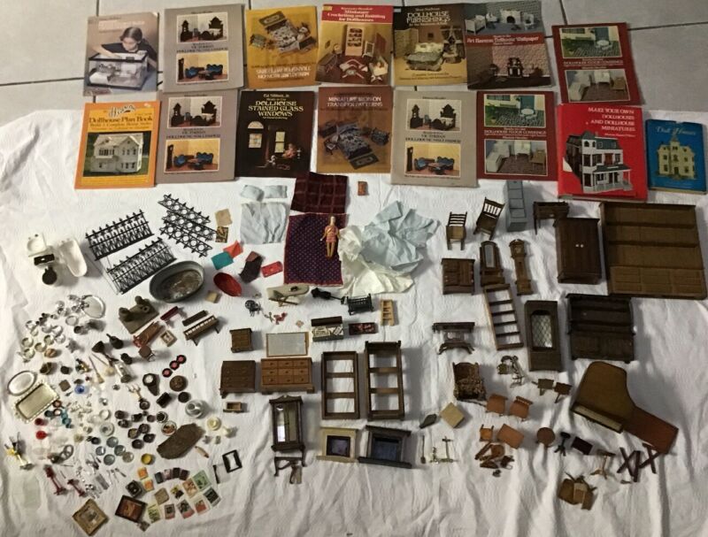 Title (ebay affiliate link): VTG Dollhouse Miniature Lot Miscellaneous Furniture & Household Items Huge Lot