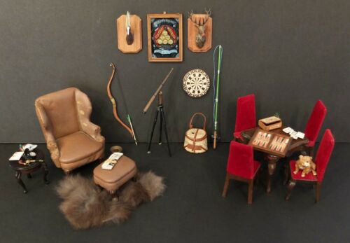 Vintage Dollhouse Miniature 30-Piece Men''s Den Or Man Cave Furniture 1:12 Scale