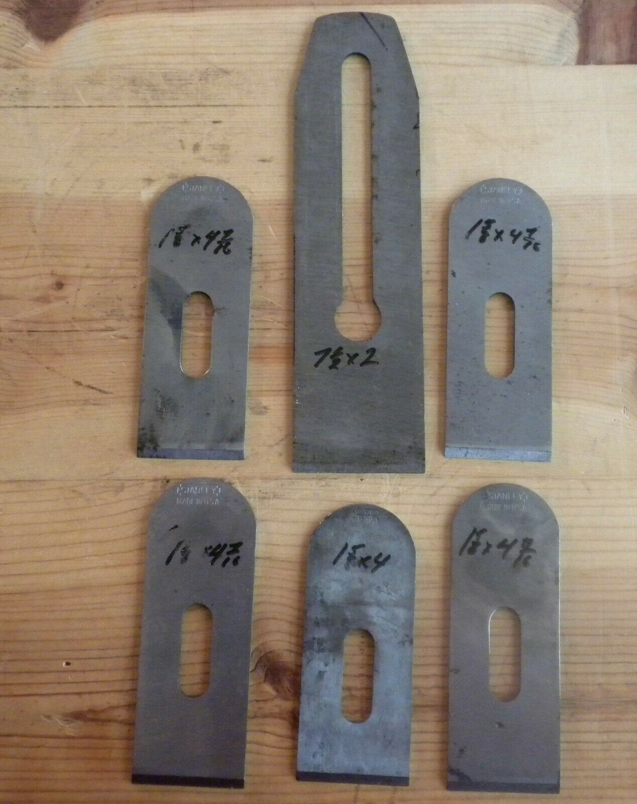 6 UNUSED VINTAGE STANLEY PLANE BLADES 3 SIZES FITS MODELS ???