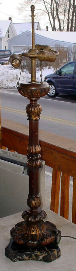 Title (ebay affiliate link): QUALITY 34 1/2" CARVED WOOD ANTIQUE TABLE LAMP W/ MARBLE BASE W/ 3) SOCKETS N/R