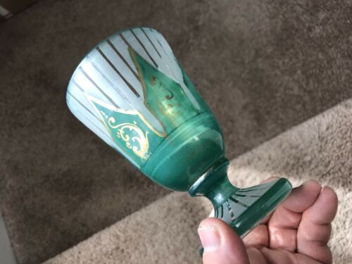 Title (ebay affiliate link): Early Pontil Wine Tumbler Art Glass Green Flashing Cathedral Arches Early 1900''s