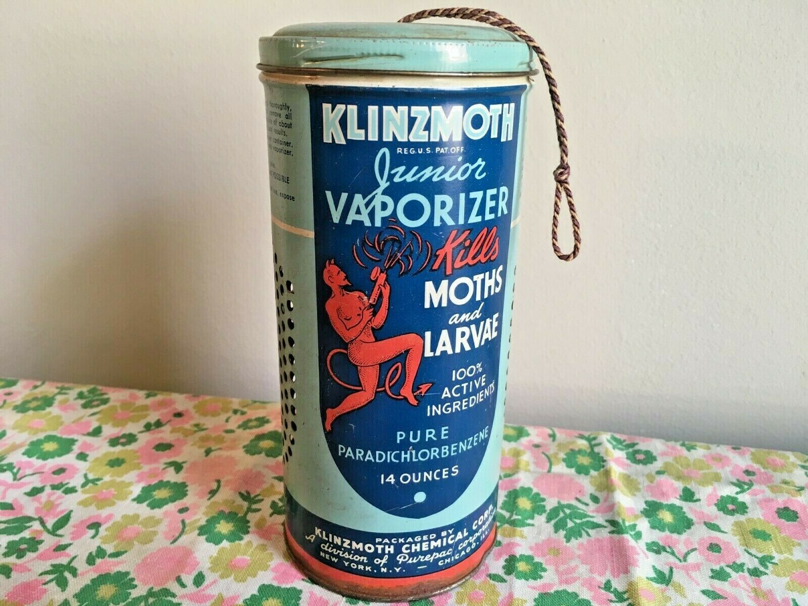 Title (ebay affiliate link): 1945 Dancing RED DEVIL Klinzmoth Chicago-NY Tin Advertising Can