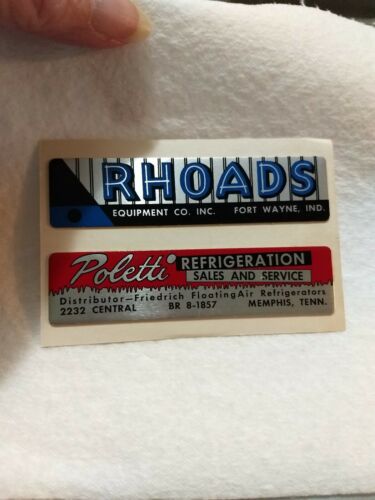 2 Vintage 1950''s Salesman Samples Metal Name Plates Rhoads Equip Poletti Sales